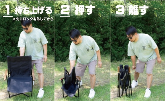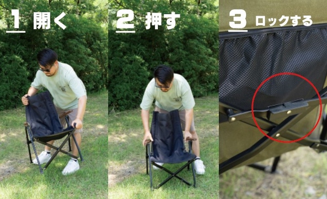 従来の分解しコンパクトに収納できるチェアを、耐久性は損なわず、より「簡単」かつ「コンパクト収納」ができるよう改良した高機能チェアです。