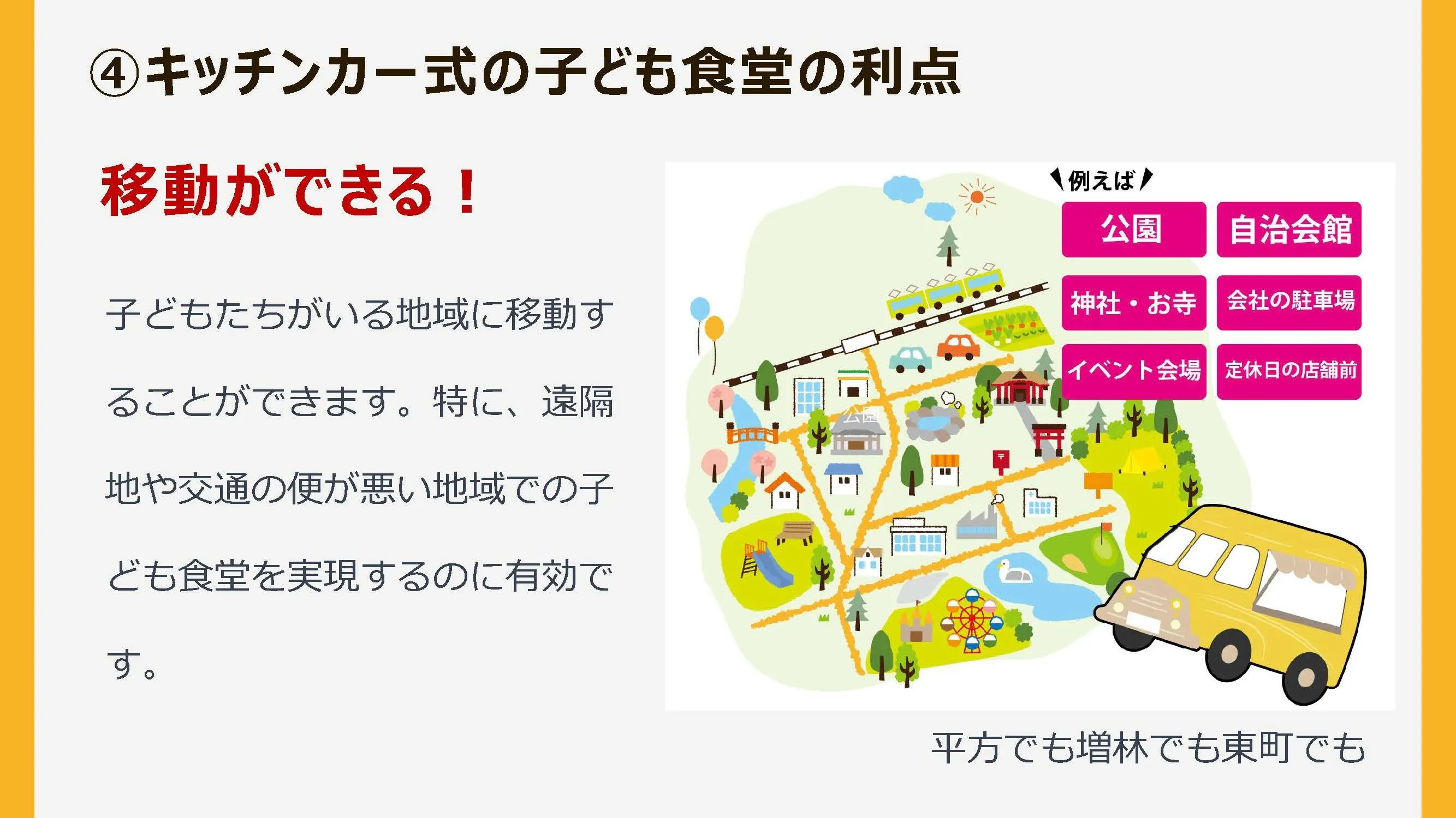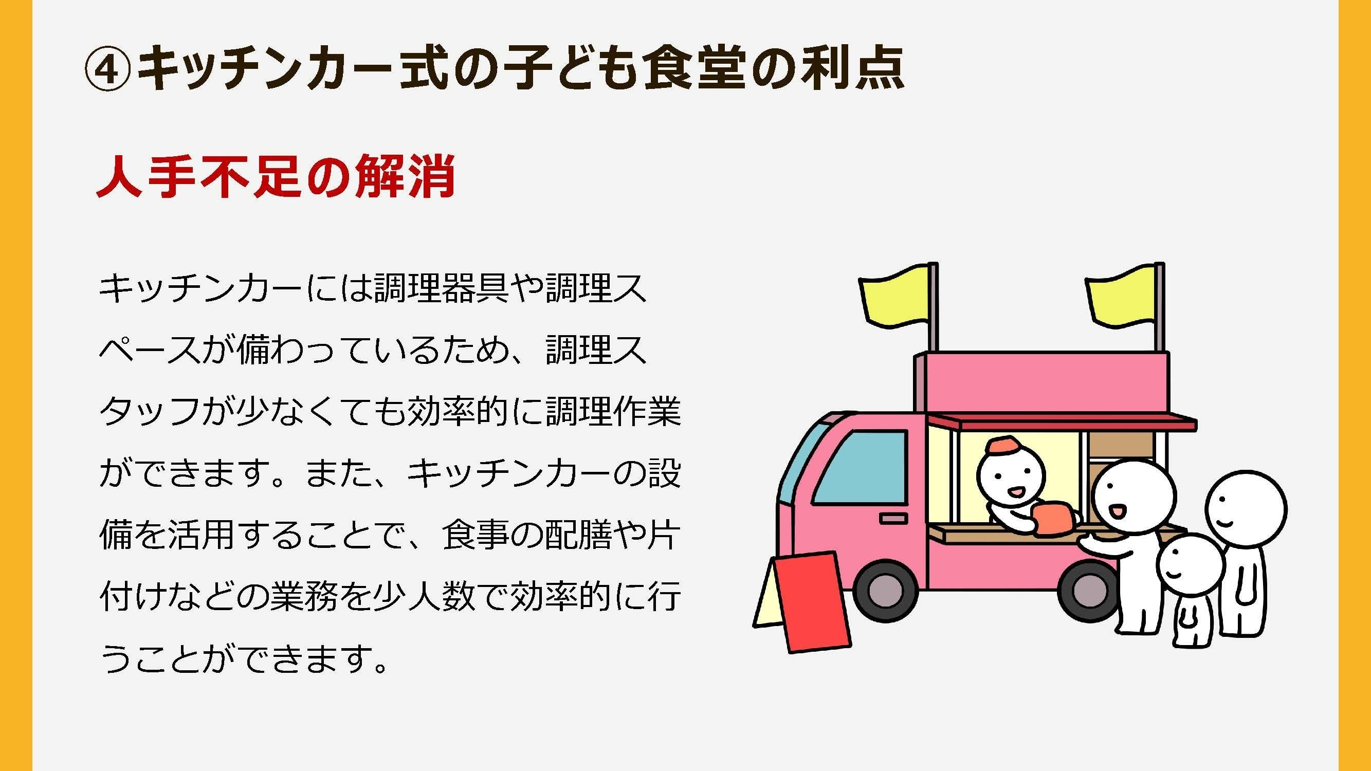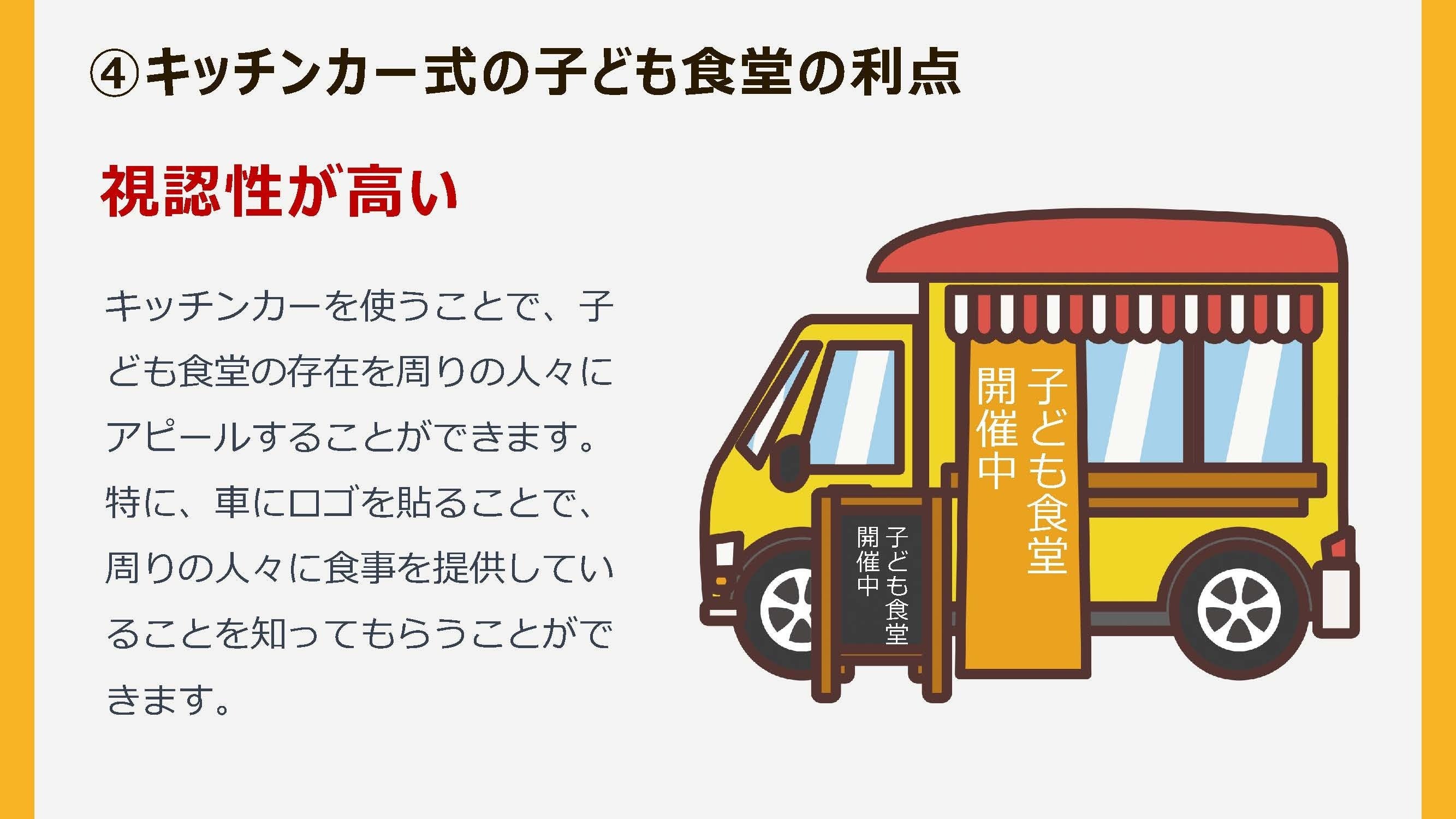 移動式で子ども食堂を増やす事です。
