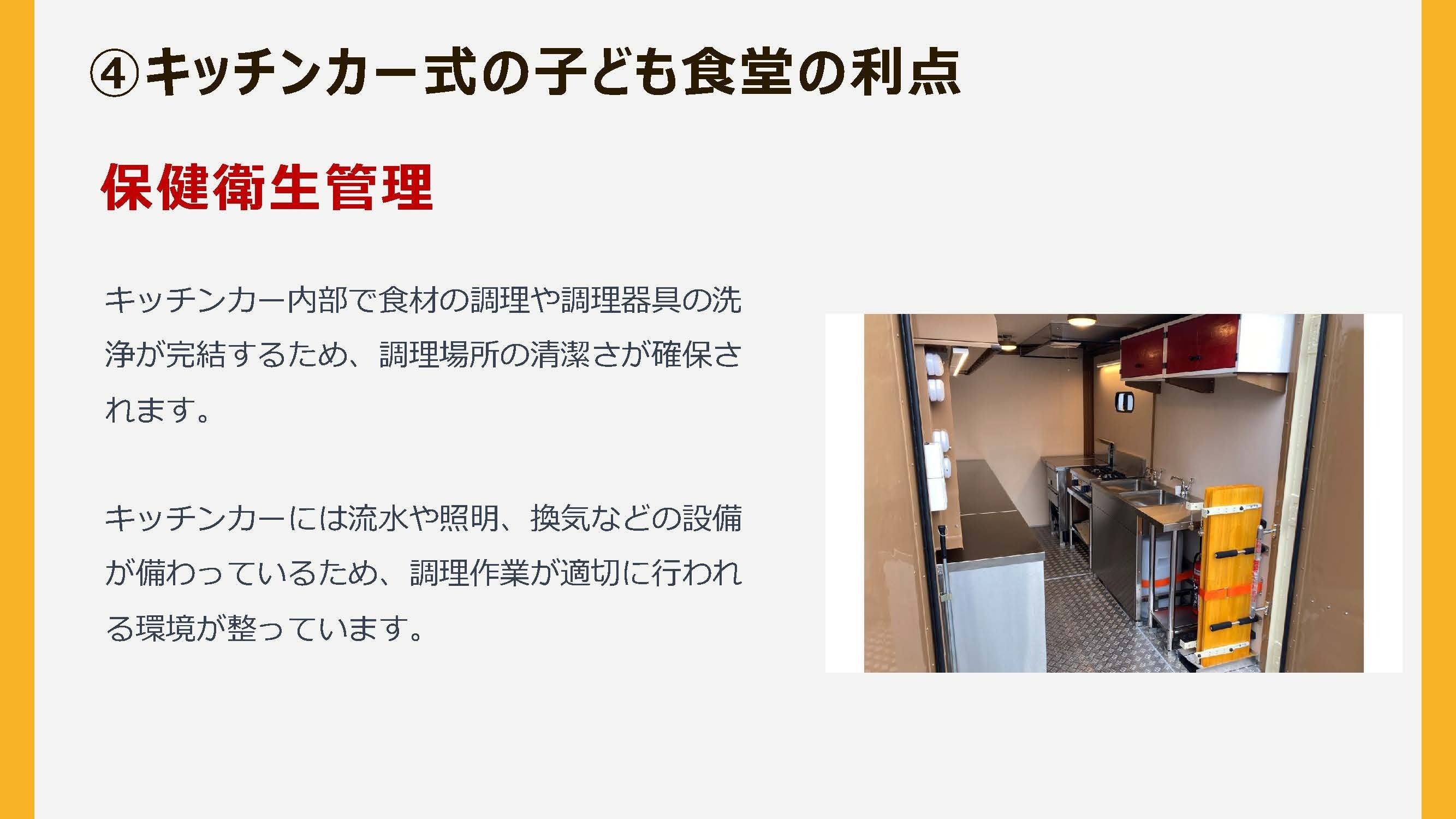 私は「マルシェ開催」という場所が固定されない「居場所つくり」に関して経験を重ねてきたことから、今回のキッチンカーを利用した子ども食堂の開催を発案いたしました。