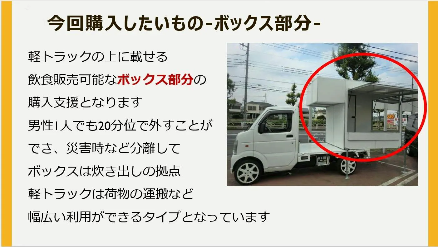 今回 増田さんに「キッチンカーを使おう!」と発案していただき、「この方法ならできる!」と確信をもって挑戦することにいたしました。