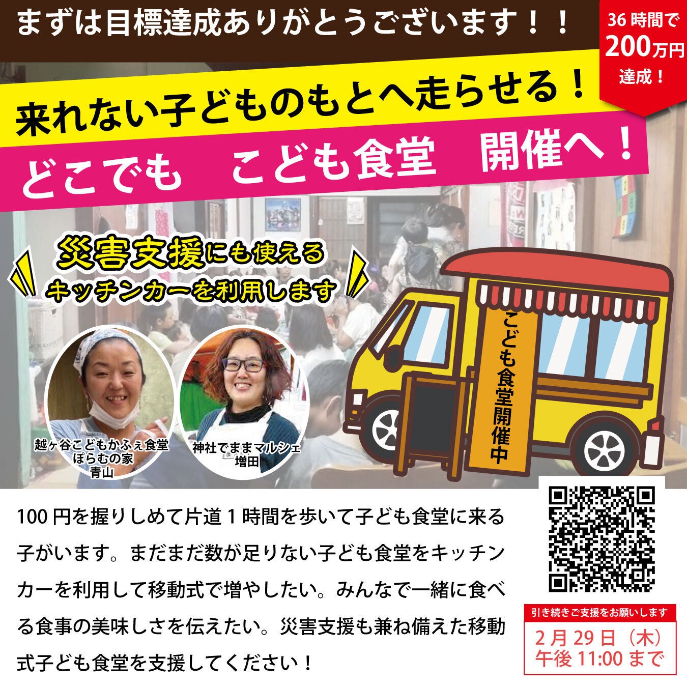 目標額を上回った資金はこれからはじまる移動式子ども食堂の費用に充てさせていただきます。