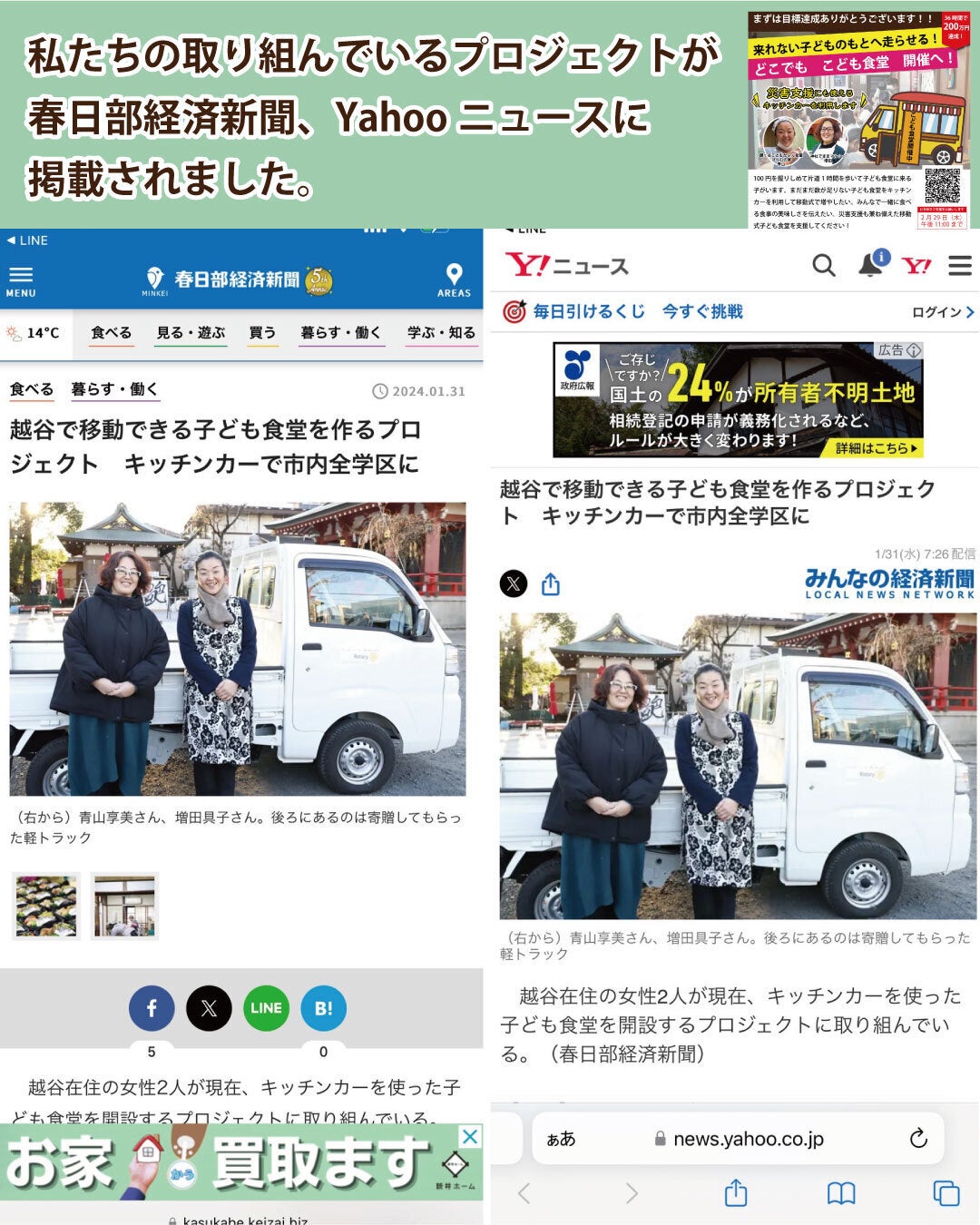 春日部経済新聞さんから取材いただき、この度、私たちの取り組んでいる「越谷で移動できる子ども食堂を作るプロジェクト」が、春日部経済新聞やYahooニュースに掲載されました。
