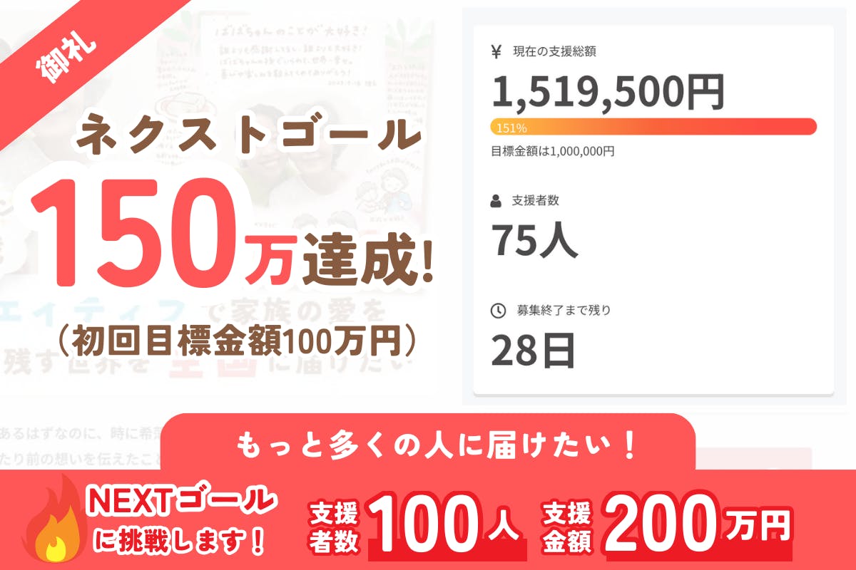 【御礼】ネクストゴール150万円を達成いたしました