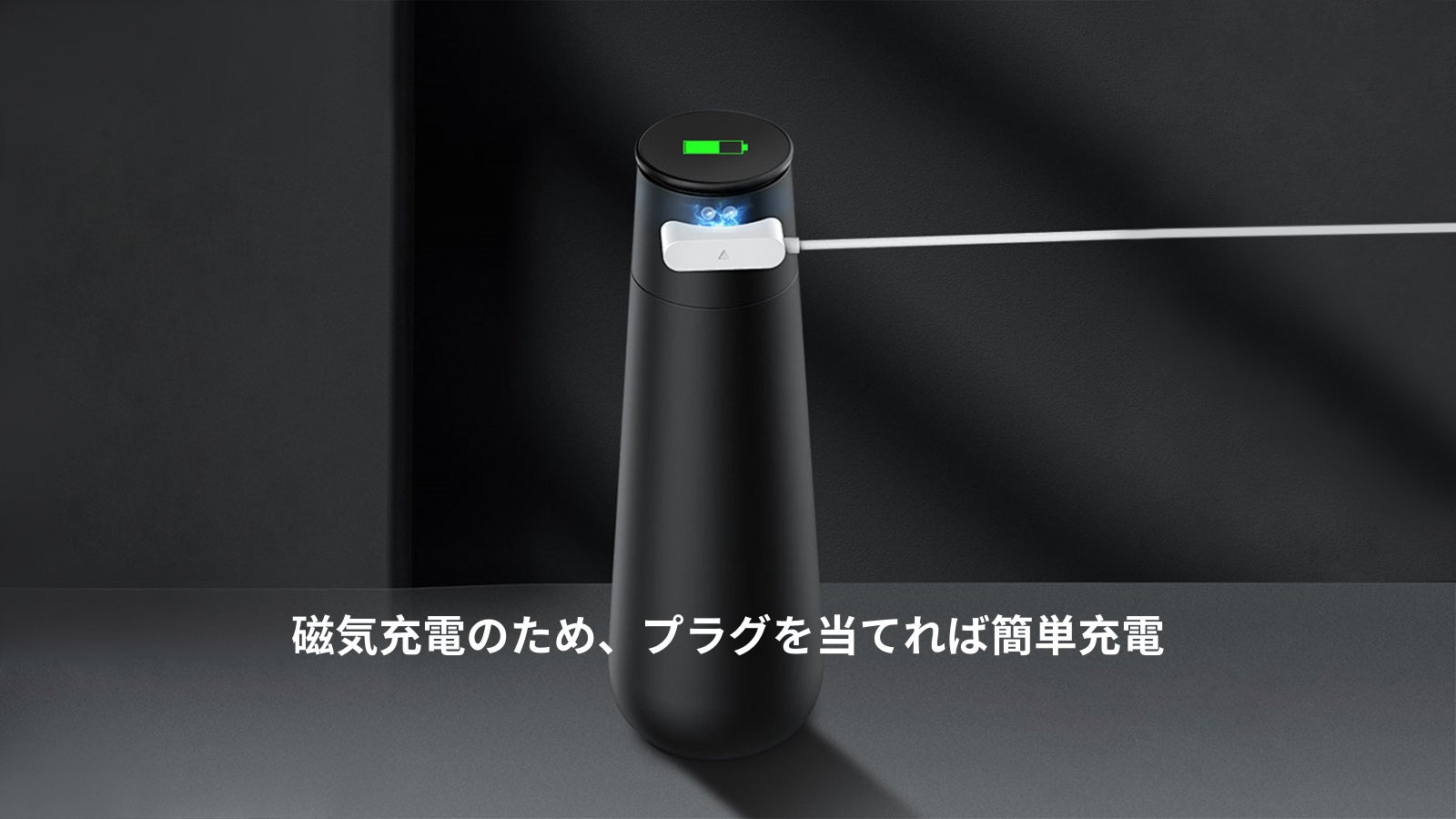 磁気充電のため、プラグを当てれば簡単に充電が開始されます。
