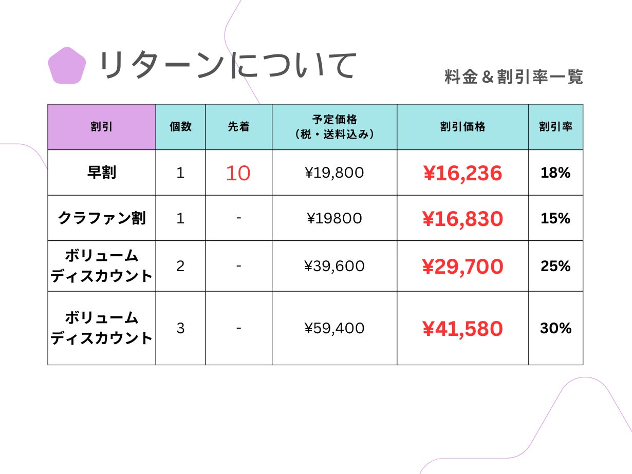 ・本文中に記載させていただいたスケジュールは、あくまでプロジェクト公開時点の予定です。クラウドファンディングの性質上、配送遅延のおそれがございます。