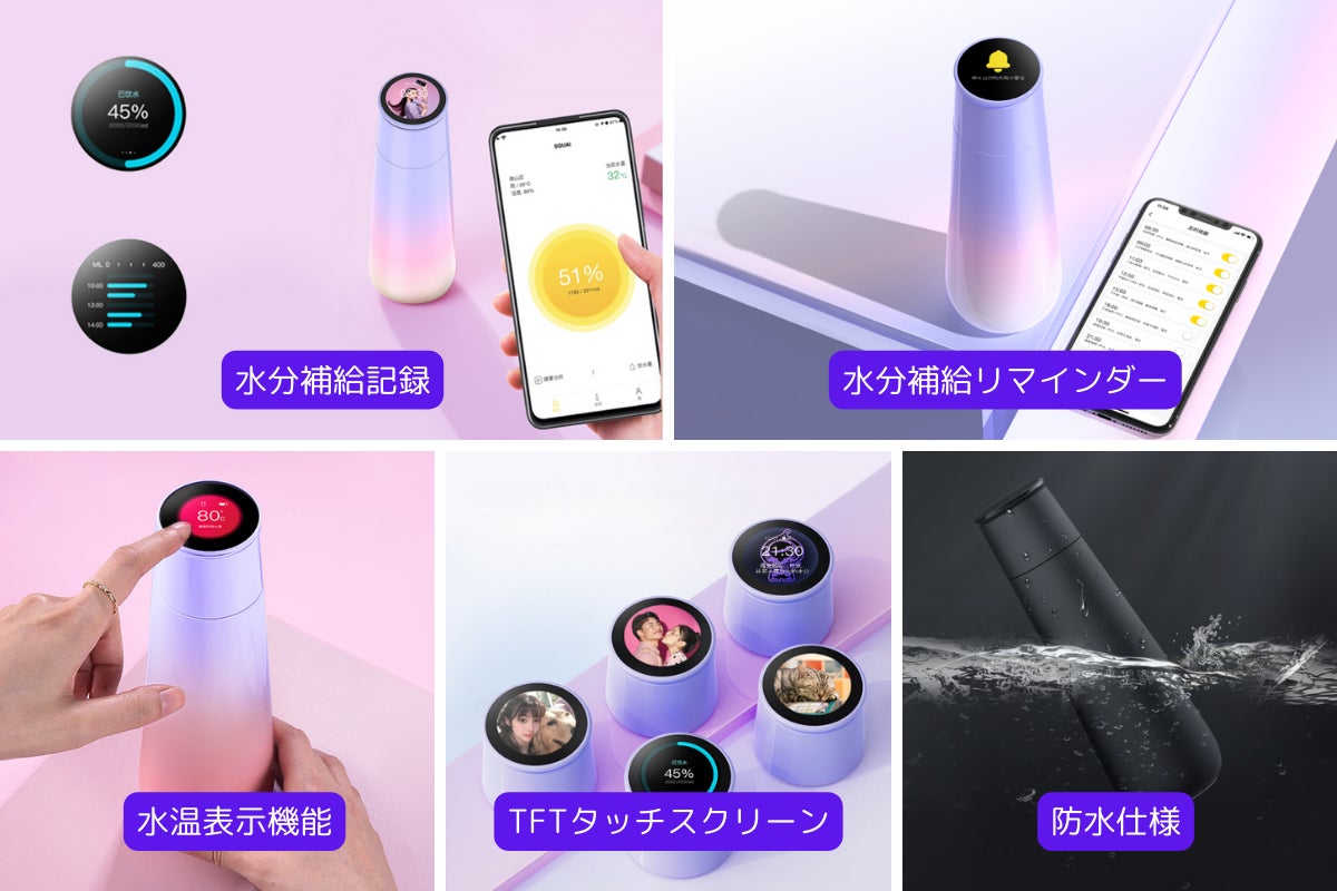 ・多忙なときは水分補給を忘れがちなので、水分補給アラート機能は重宝している。水温表示機能のおかけで熱湯がわかるので、やけどを回避できる。TFTタッチスクリーンはお気に入りの写真を壁紙として設定できるのが良い。お世話になった人へのギフトにも向いていると思う。