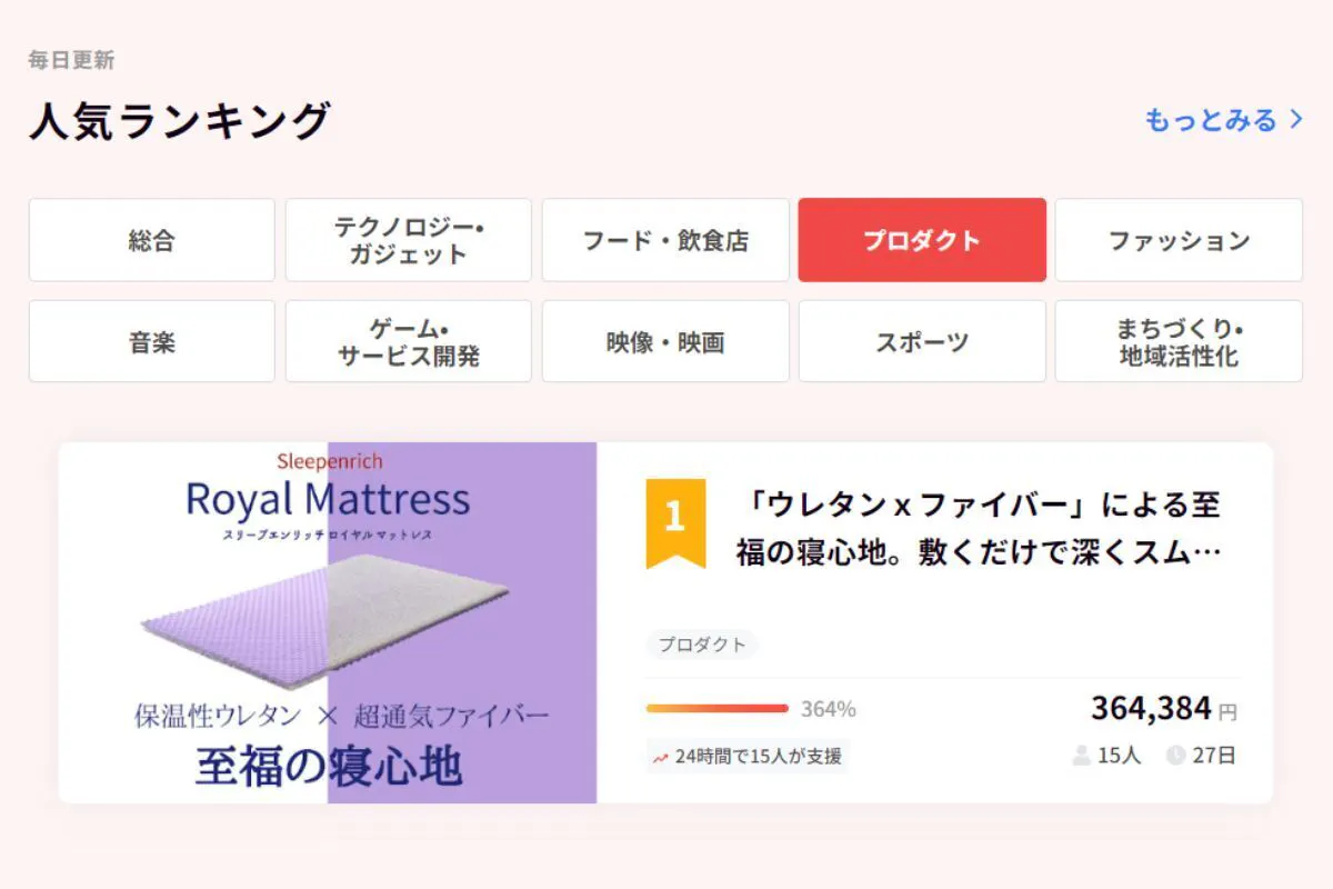 昨日開始致しました本プロジェクトが【人気ランキング:プロダクト部門1位】を獲得しました!ご支援頂いた皆様、本当にありがとうございました!!