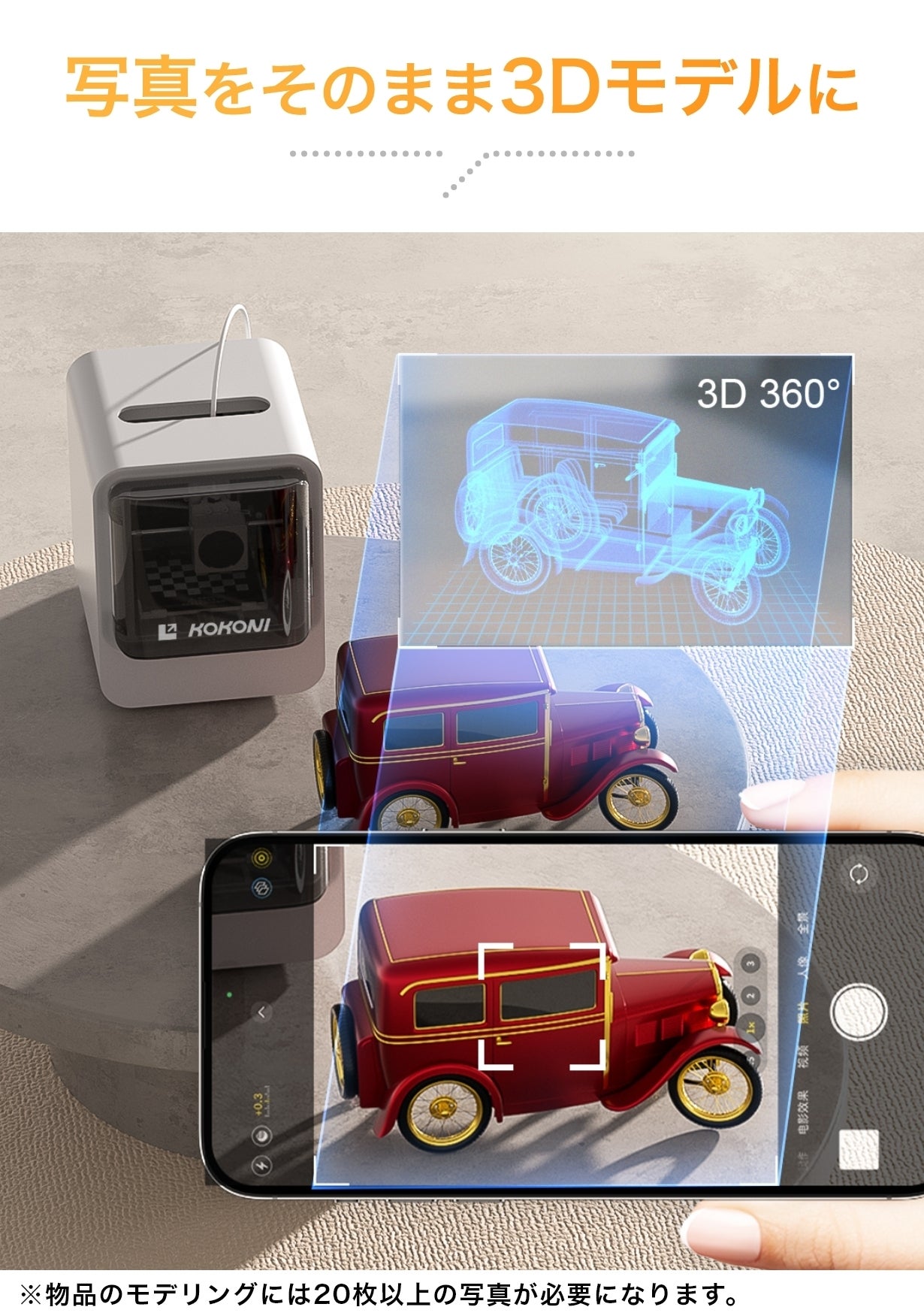 2024/02/09 10:50いつも温かい応援を賜り誠にありがとうございます。アプリ機能「オブジェクトモデリング※」について進捗状況のご報告でございます。本機能は、現在アプリの不具合を修正中です。ご迷惑をお掛けして申し訳ございません。早急に問題を解決し、正常にご利用ができるよう努めてまいります。アプリの更新まで今しばらくお待ちくださいませ。何卒、よろしくお願いいたします。※オブジェクトモデリング機能とは・・・実在するモデルの3D測量を行い、KOKONIプリンターにモデルを取り込む機能です。モデリングのためには25枚以上の写真のアップロードが必要です。 もっと見る【重要】本体底面の保証シールの取扱いに関して