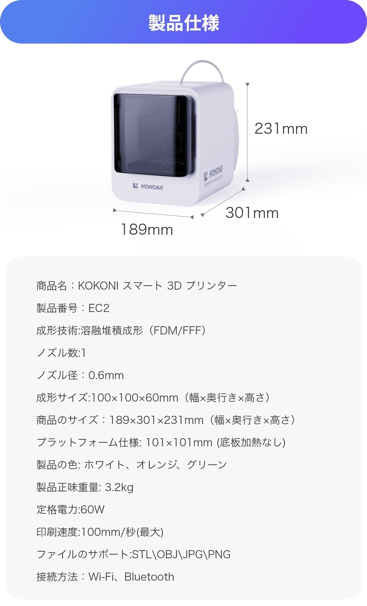 メーカーHP:https://www.kokoni3d.com/en-jp