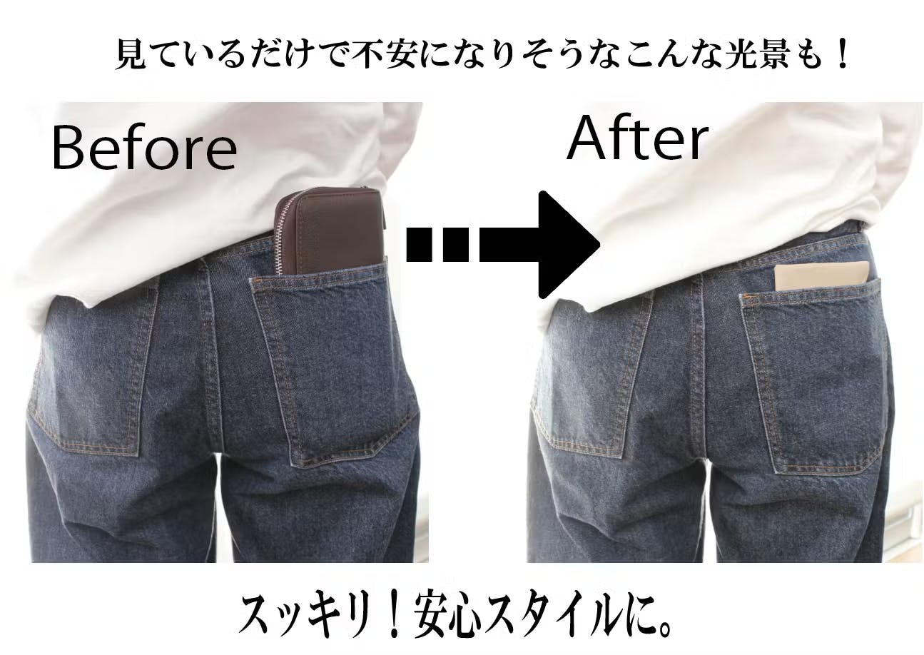 「BabySoft」はコインを入れるポケットなどにもファスナーやホックを使用しない特殊な構造を採用しているため、限界まで薄さを追求した構造になっています。