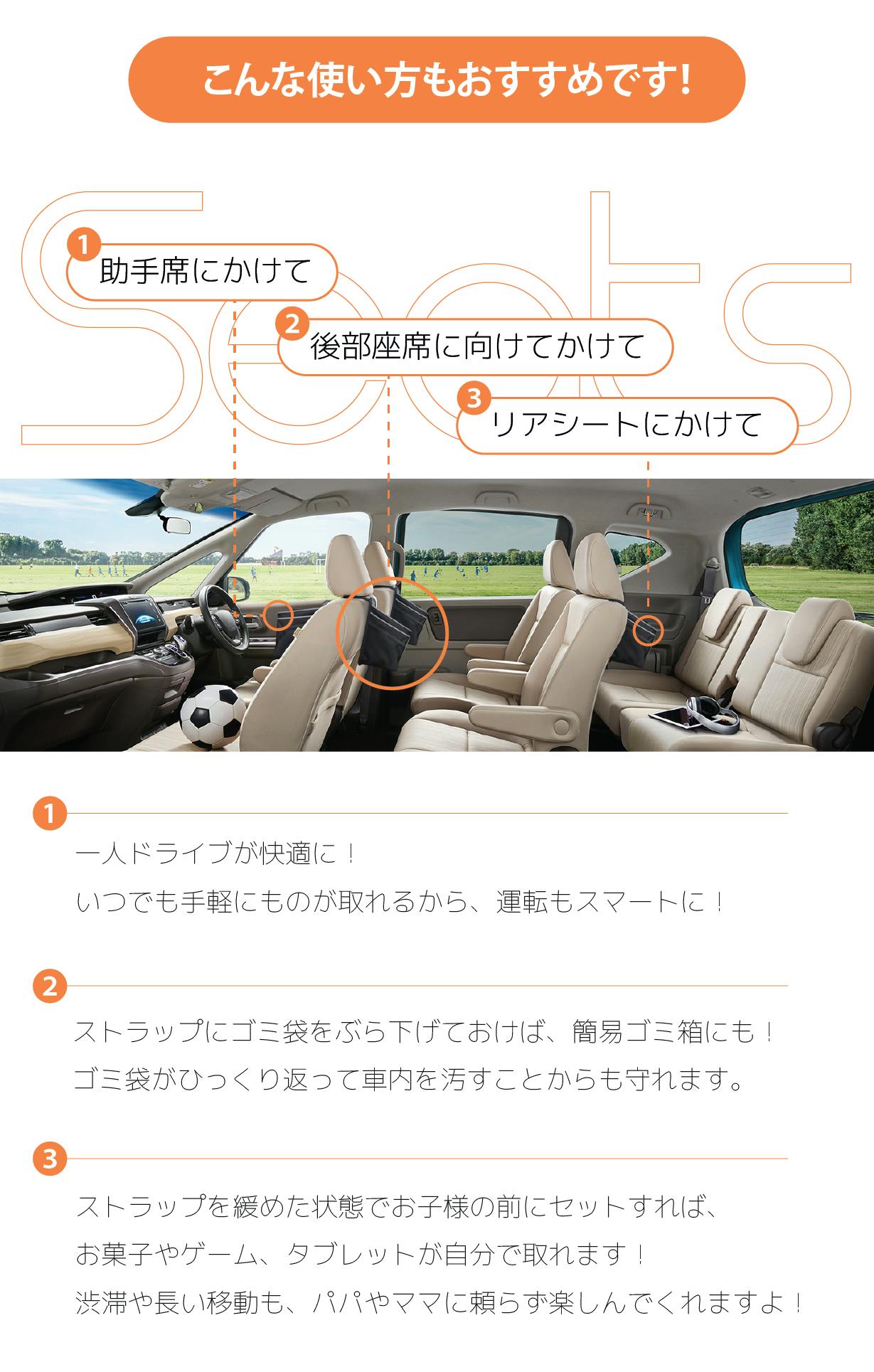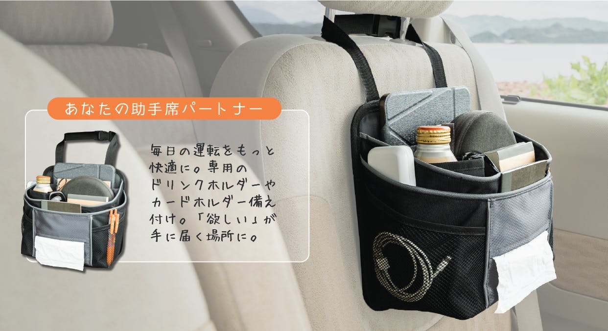 あなたのドライブを快適にする、車内専用収納バッグです。