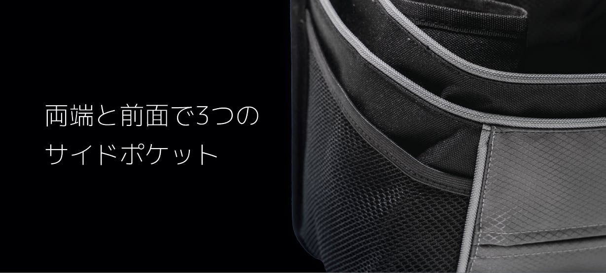 メインポケットの両端と前面には、3つのサイドポケットをご用意しました。