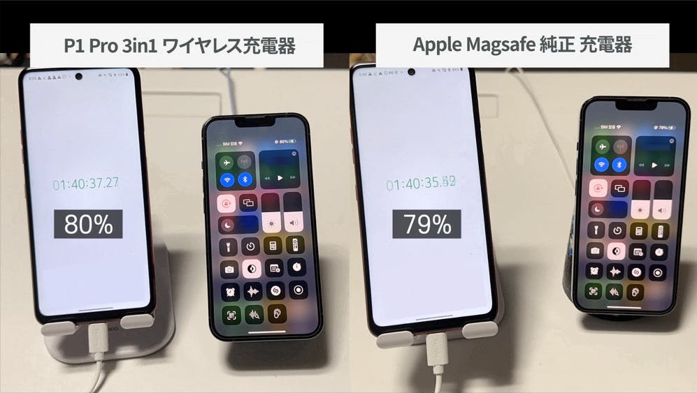 正規品のMagSafe充電器と弊社のワイヤレス充電器 P1 Proと比較して見ました。