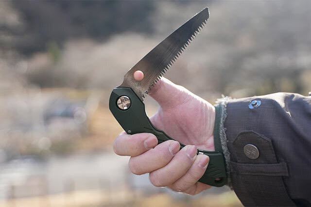 このノコギリは剪定用ノコギリの切れ味というメリットは享受しながらも、ブッシュクラフト専用というアレンジが加わっているブレードになっているのです。