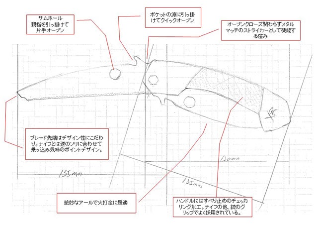 サイズ感がナイフなら、オープンクローズの構造もナイフと同様に仕上げています。