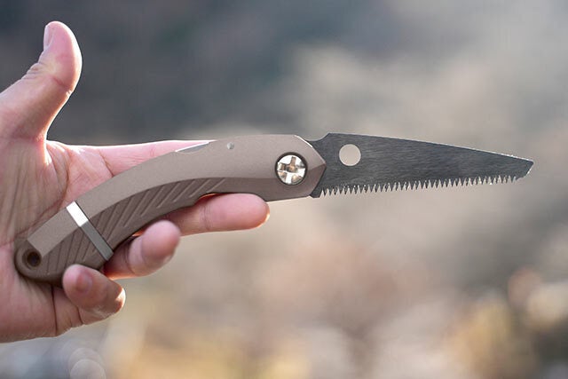 場数を踏むほど刃物は鋭く小さくなる傾向にありますが、このノコギリも同じで、ブッシュクラフターが行うウッドクラフト特化型という用途と高性能ブレードを考えれば本当にこれで十分です。