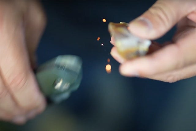 メノウや黄鉄鉱、黒曜石といった石器時代から使われている天然鉱石はもちろん、コツさえつかめば道端の石ころでも火花を出すことができます。