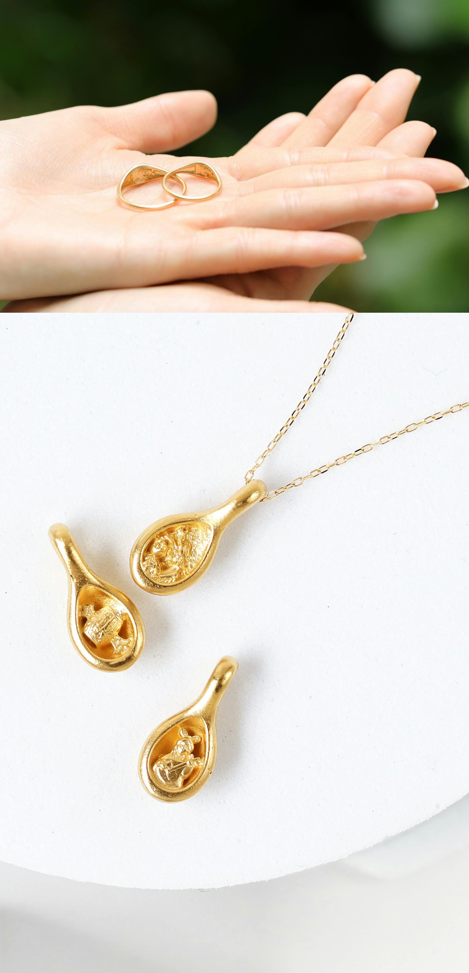 純度99.9%の無垢の純金を使った、デイリー使いにもフォーマルシーンにも使える純金ジュエリーを作りました。さらに、裏面には『秘密』が隠されています!