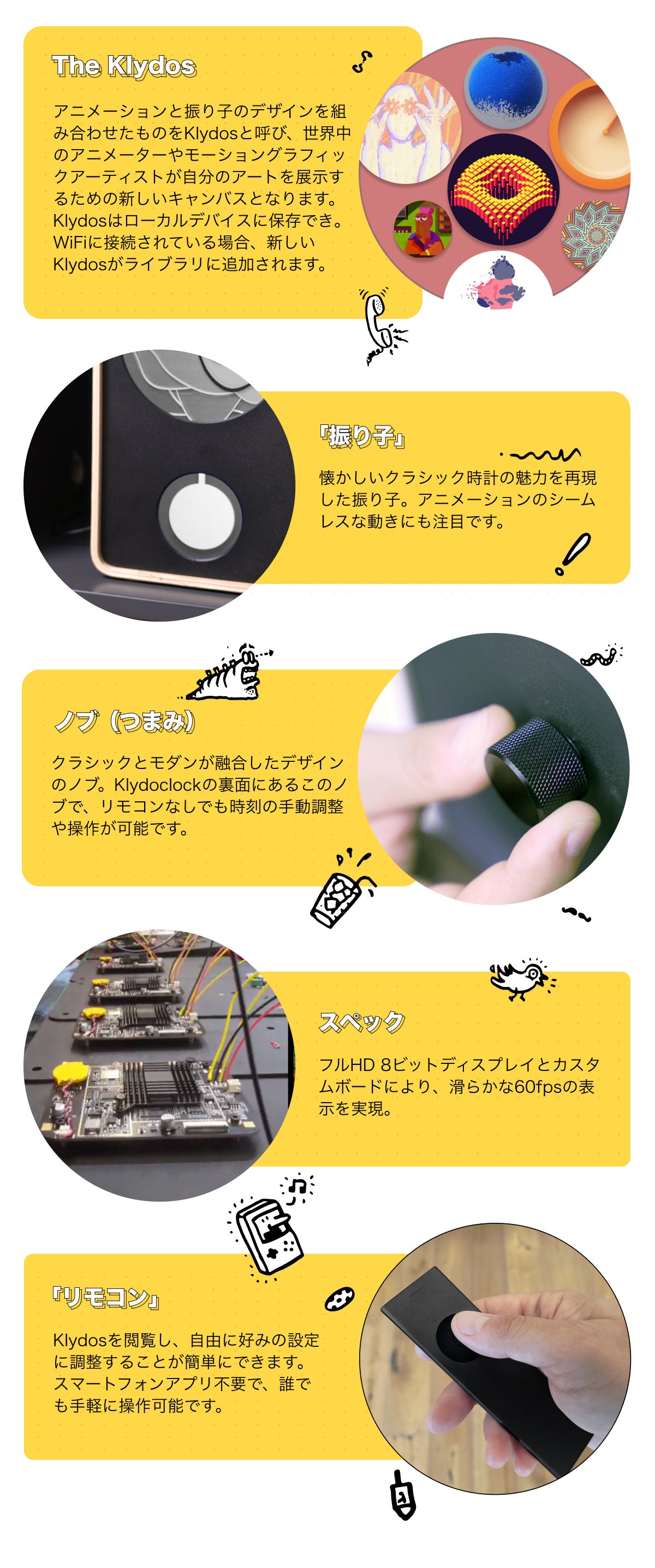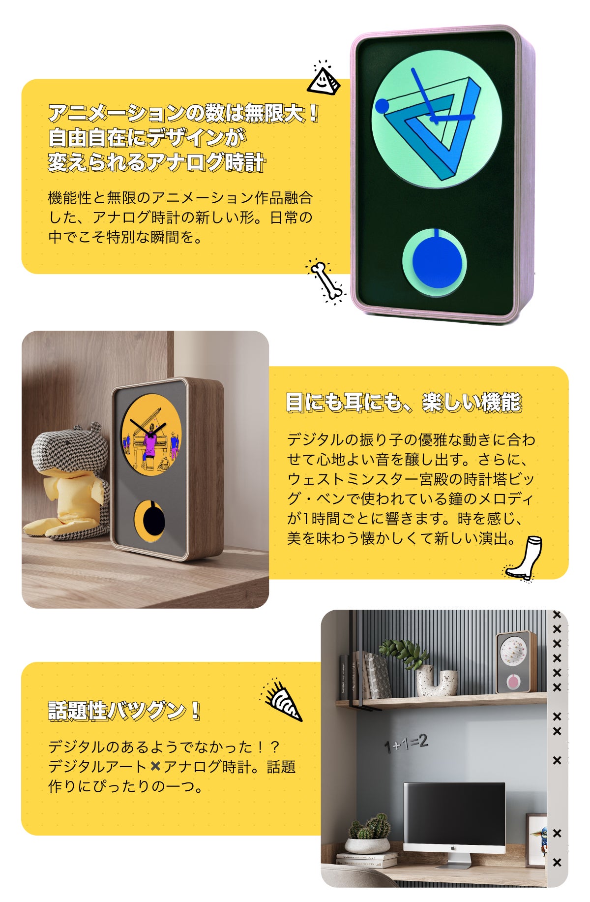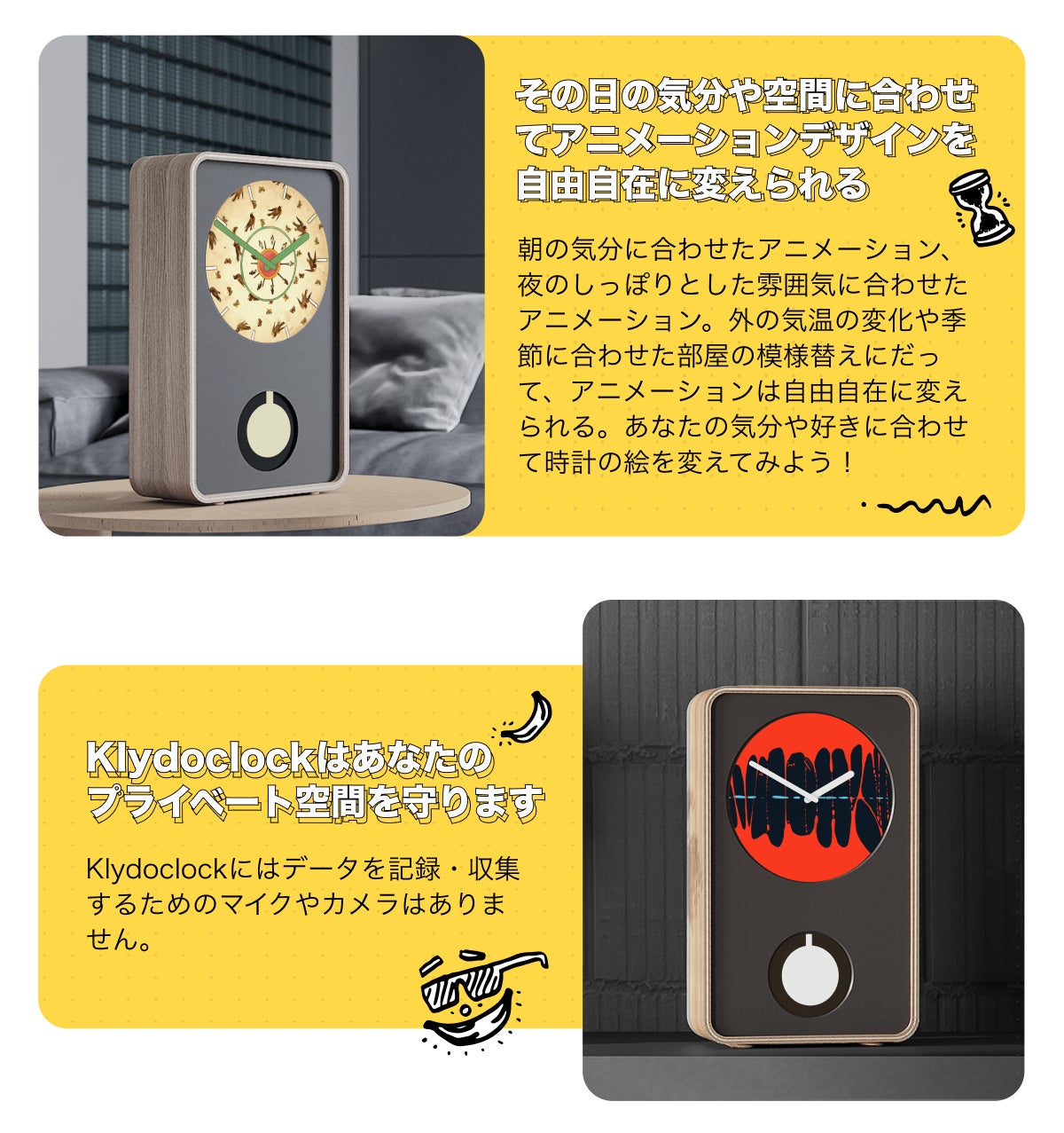 2024/05/31 10:51応援とご支援、誠にありがとうございます。本日23時59分にクラファン公開が終了となります。まだご検討中の方、日本初上陸のKlydoclockをいち早く・しかも限定最安値価格でゲットできるのは本日までですよ!!このプロジェクトが終わる前に、早めのアクションをお待ちしております!・自分への特別なプレゼントに・誰とも被らないユニークなギフトに・デジタルとアナログが見事に融合した時計?面白そう!・部屋をいろんなアニメーションで模様替えしてみたい!など...最先端だけど懐かしさもあるKlydocklockをお家にお迎えしませんか?第1弾:開封動画第2弾:アニメーションのバリエーション第3弾:懐かしいちっくたっくの音第4弾:自分だけの振り子時計に!実際の使い方、サイズ感や質感もわかりやすく紹介しているので、支援を検討中の方はぜひチェックしてみてください!みなさまからの駆け込み支援をお待ちしております!!!Klydocklockチーム一同 もっと見る