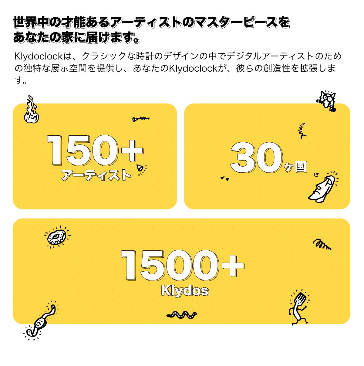 2024/06/03 15:55沢山の応援、ご支援ありがとうございました。この度、プロジェクトを無事終了する事が出来ました。たくさんの「応援コメント」「メッセージ」に励まされた1ヶ月半でした。開始前は不安でいっぱいでしたが、たくさんの方のご支援で、想像以上の結果となりました。本当にありがとうございます。私たちは今回のプロジェクトで日本初上陸と果たしましたが、ご支援頂いた皆様をはじめ多くの方にKlydoclockを知っていただけたことも、このプロジェクトの成果だと思っています。私たちの今後の日本進出に活かして行きたいと思っています。リターンの発送状況につきましては順次活動報告に掲載させて頂きます。また今後のことなども随時活動報告に掲載させて頂きたいと思います。引き続き応援をよろしくお願いいたします!Klydocklockチーム一同 もっと見る