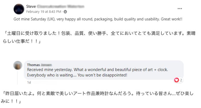 5600万円以上のご支援額を達成した、先に終了している海外クラウドファンディングの支援者様からいただいた、Klydoclockのレビューをご紹介いたします!