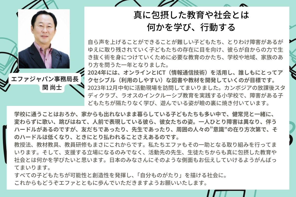 2024年には、オンラインとICT(情報通信技術)を活用し、誰しもにとってアクセシブル(利用のしやすい)な図書や教材を開発していくのが目標です。