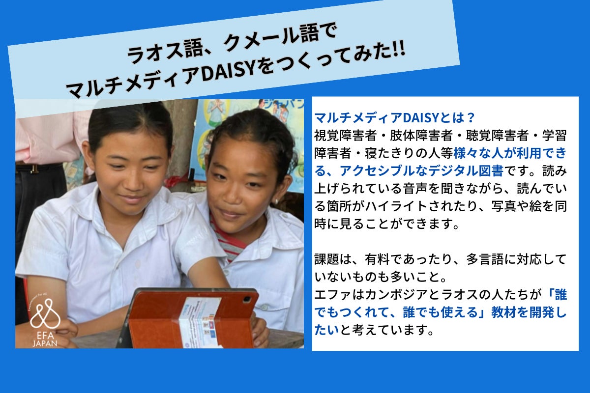 【イベント1】ラオス語、クメール語でマルチメディアDAISYをつくってみた!!全プロセスを公開<7月1日(月)、3日(水)、4日(木)12:30~13:00 3回シリーズ>