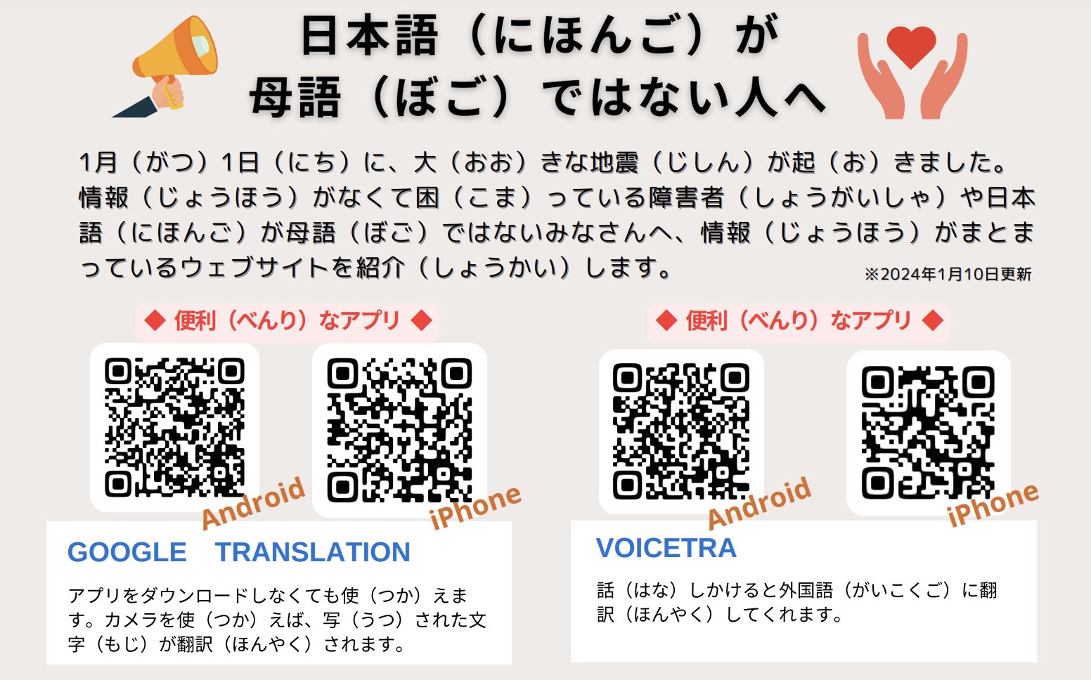 地震(じしん)についての情報(じょうほう)のまとめ~障害者(しょうがいしゃ)、日本語(にほんご)が母語(ぼご)ではないみなさんへ