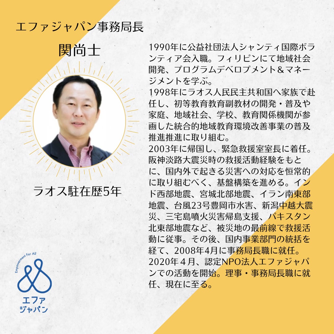 本日は、ラオスとエファ事務局長 関尚士(せきひさし)の話をさせていただきます。