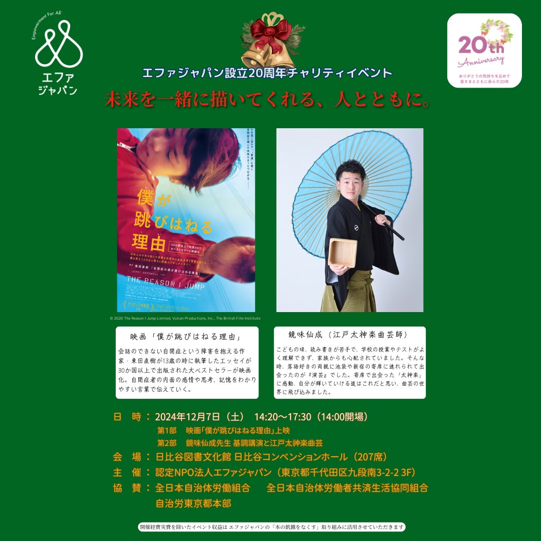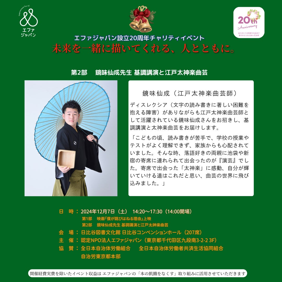 鏡味さんの基調講演と太神楽曲芸を含むエファ20周年イベントは、まだまだお申し込み受付中!ぜひお誘い合わせの上、ご参加いただければ幸いです。