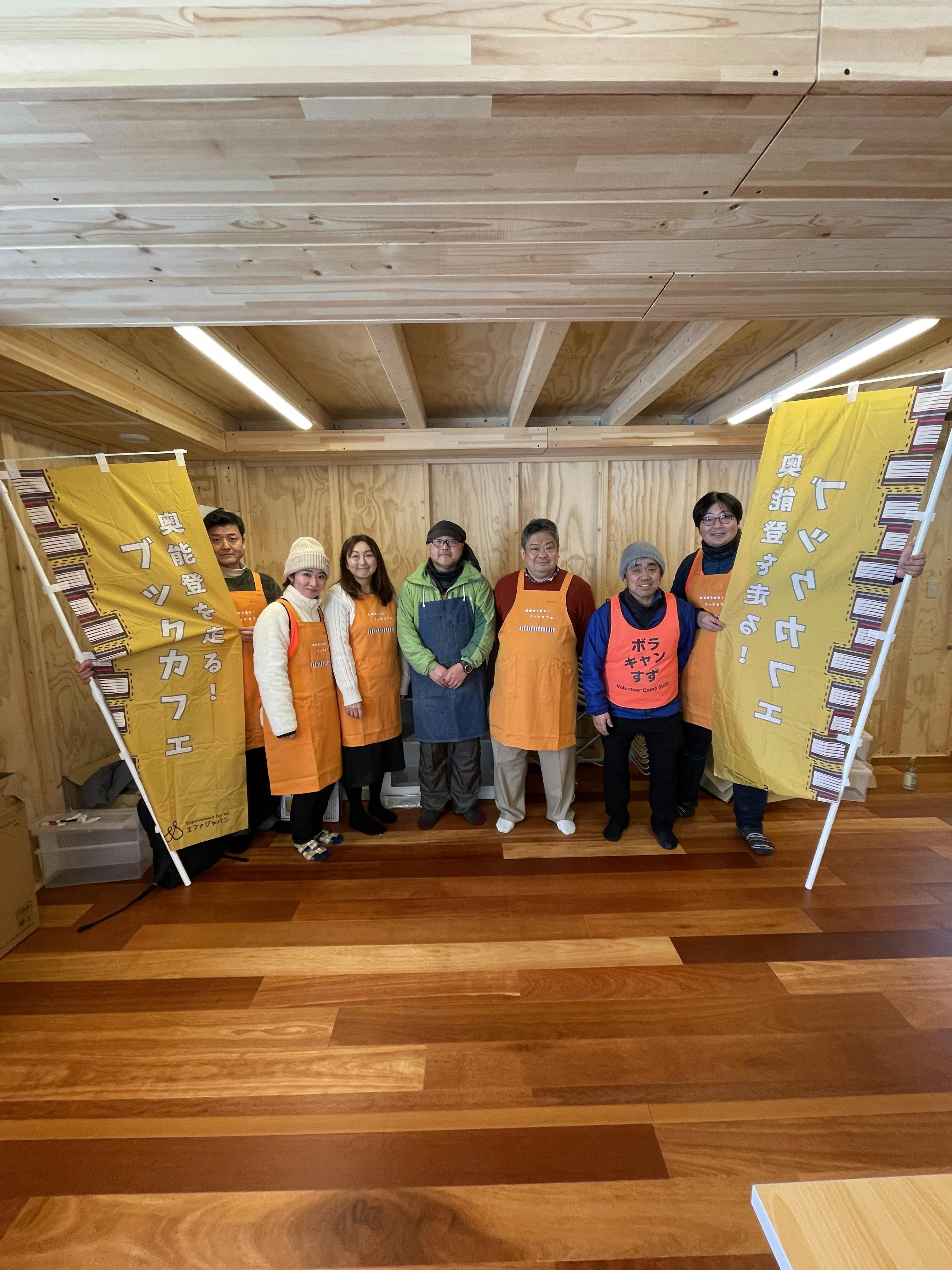 珠洲市に入っているボランティアの皆さんも「雪で活動ができないのでブックカフェの手伝いに来ましたー」とジョインしてくれました。