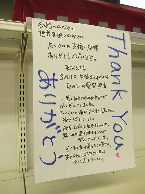 このお知らせを見たとき、2011年4月4日に岩手県大船渡市のお店で見つけたお知らせを思い出しました。