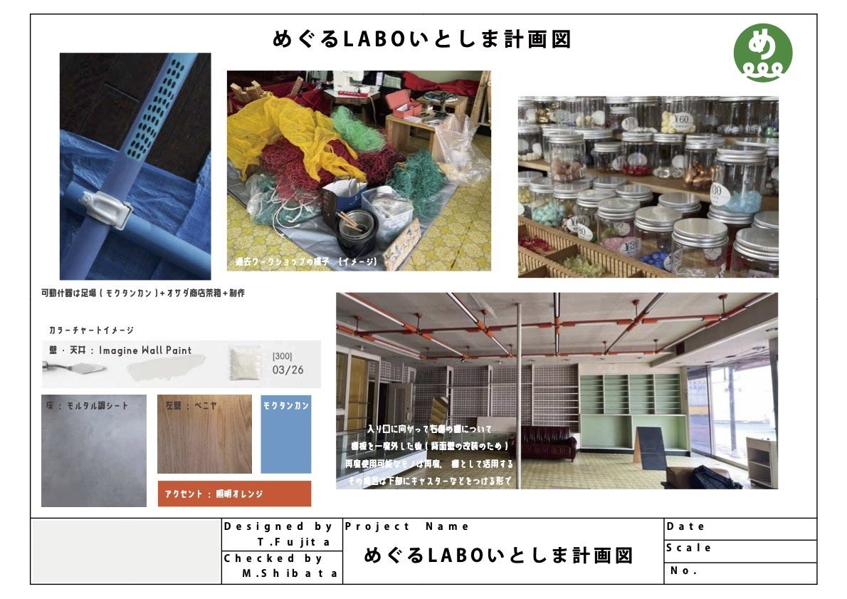 めぐるラボは、シャッターが閉じた「化粧品や婦人服を販売していた元セレクトショップ」を改装し、人が集まりやすいという商店街の利点を生かして、建物をはじめ、人や物がめぐるためのプラットホームを目指します。