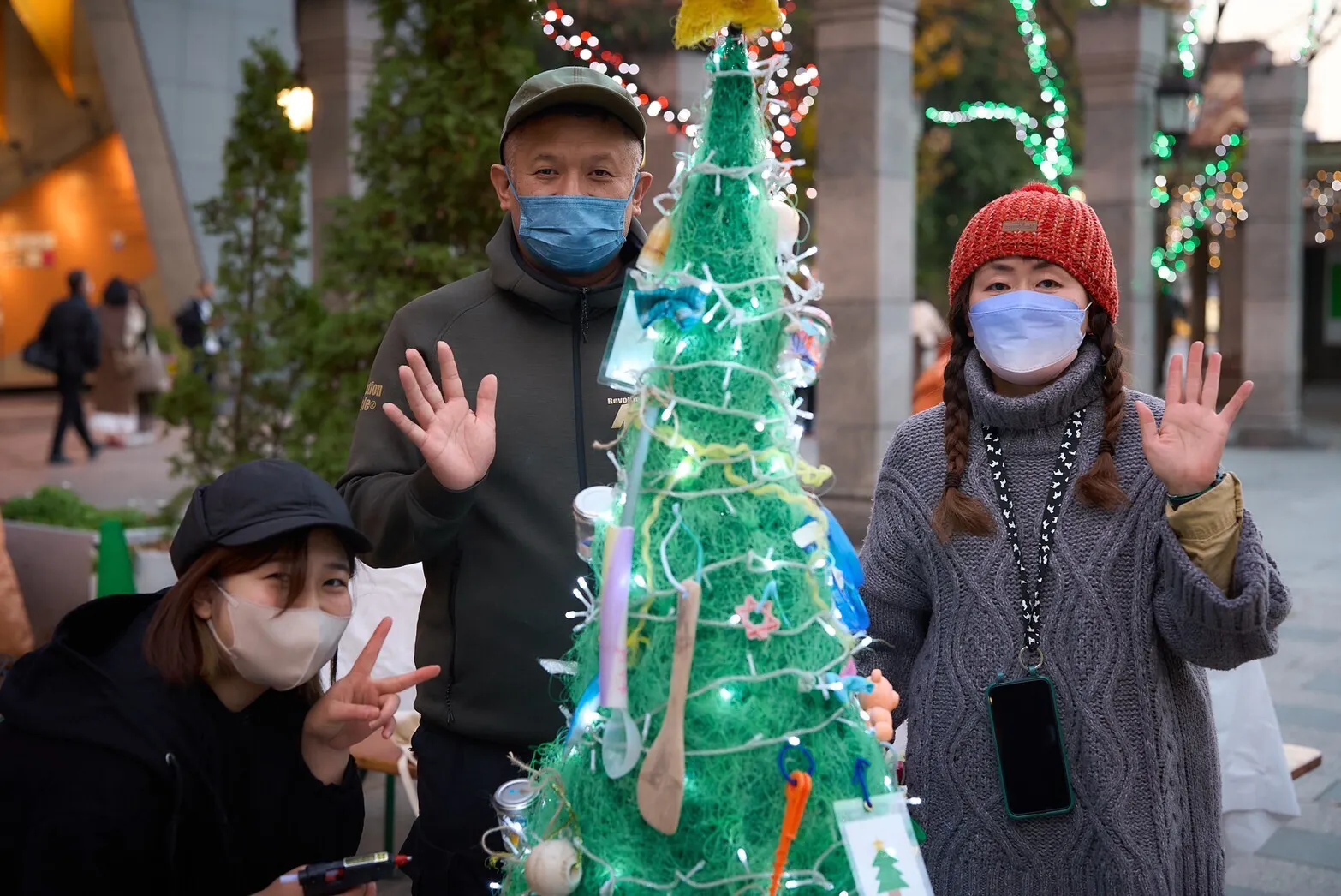 去年私たちは、廃棄漁網 6トンを引き取り、きれいに洗浄し、子どもたちが大好きなクリスマスツリーに再生させ、同じく回収した海洋ゴミでオーナメント風な飾り付けをするワークショップを各地で開催し、 いたるところで “海のクリスマスツリー” が街を彩りました。