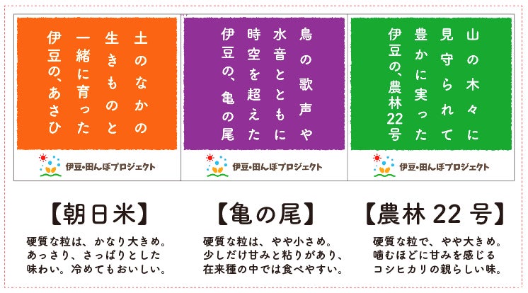 また、「朝日米」「亀の尾」「農林22号」は、お米アレルギーの方はもちろん、血糖値を気にされている方にも安心して召し上がっていただける品種といわれています。