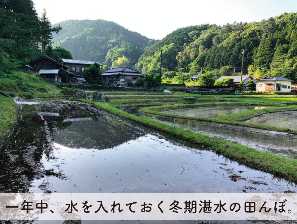 また、可能な限り、冬の間も田んぼに水を入れておく「冬期湛水」、耕さない「不耕起栽培」も行なっています。