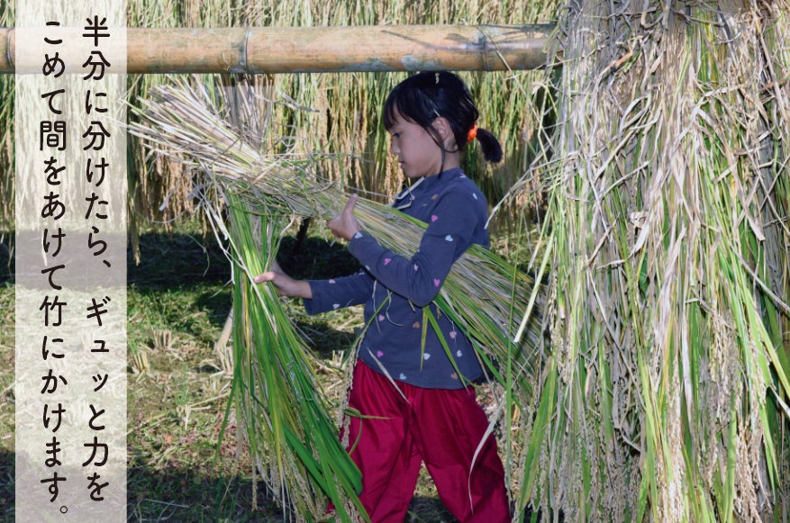 種籾や田んぼの準備から、田植え、草ぬき、稲刈り、天日干し、脱穀までの一連の作業は、「お米づくり体験会」に参加してくださる方々と一緒に行なっています。