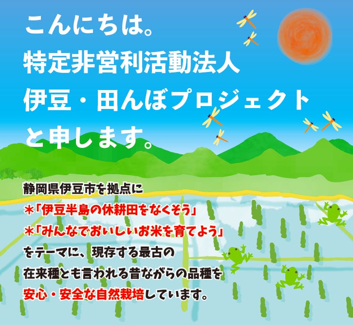私たち、特定非営利活動法人伊豆・田んぼプロジェクトでは、昔ながらの在来種のお米を自然栽培しています。