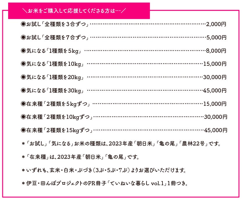 田んぼや畑に足を運んでくださる方、移住をして一緒に汗を流してくれる方、お米を定期購入してくださる方も募集しています。