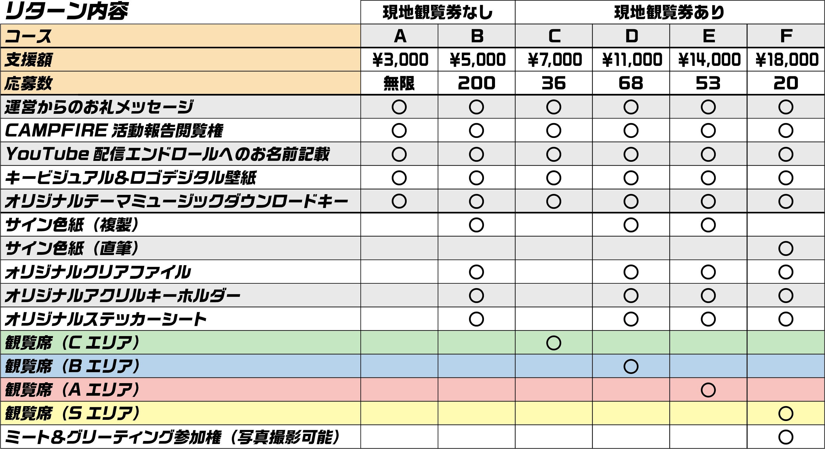 ・本プロジェクトへの支援状況により、会場の各エリアにおいて空席が発生する場合がございます。