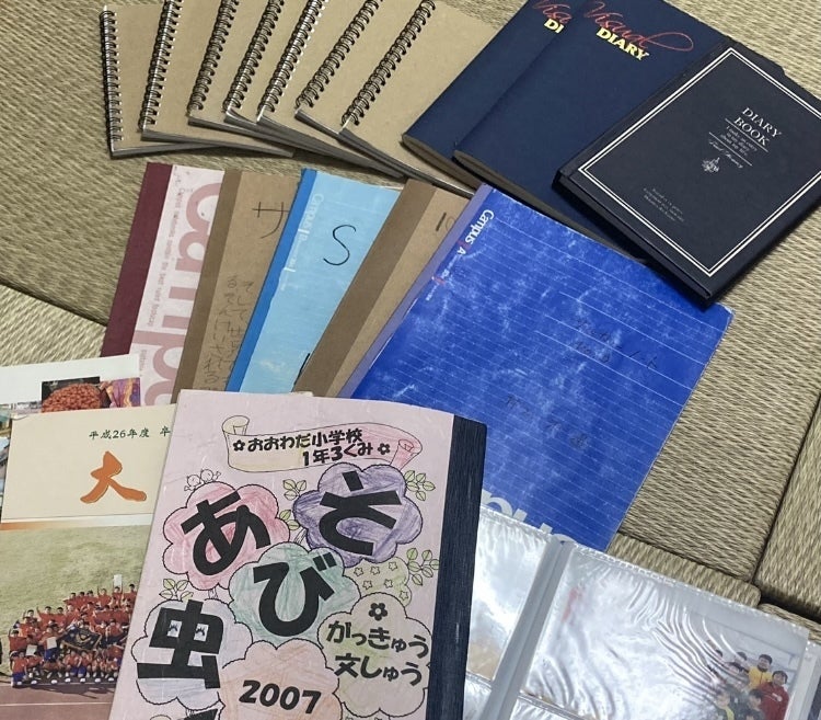 ホコリまみれになった、小中学生のサッカーノートをひっ釣り出し、高校から積み重ねた日記も広げます。