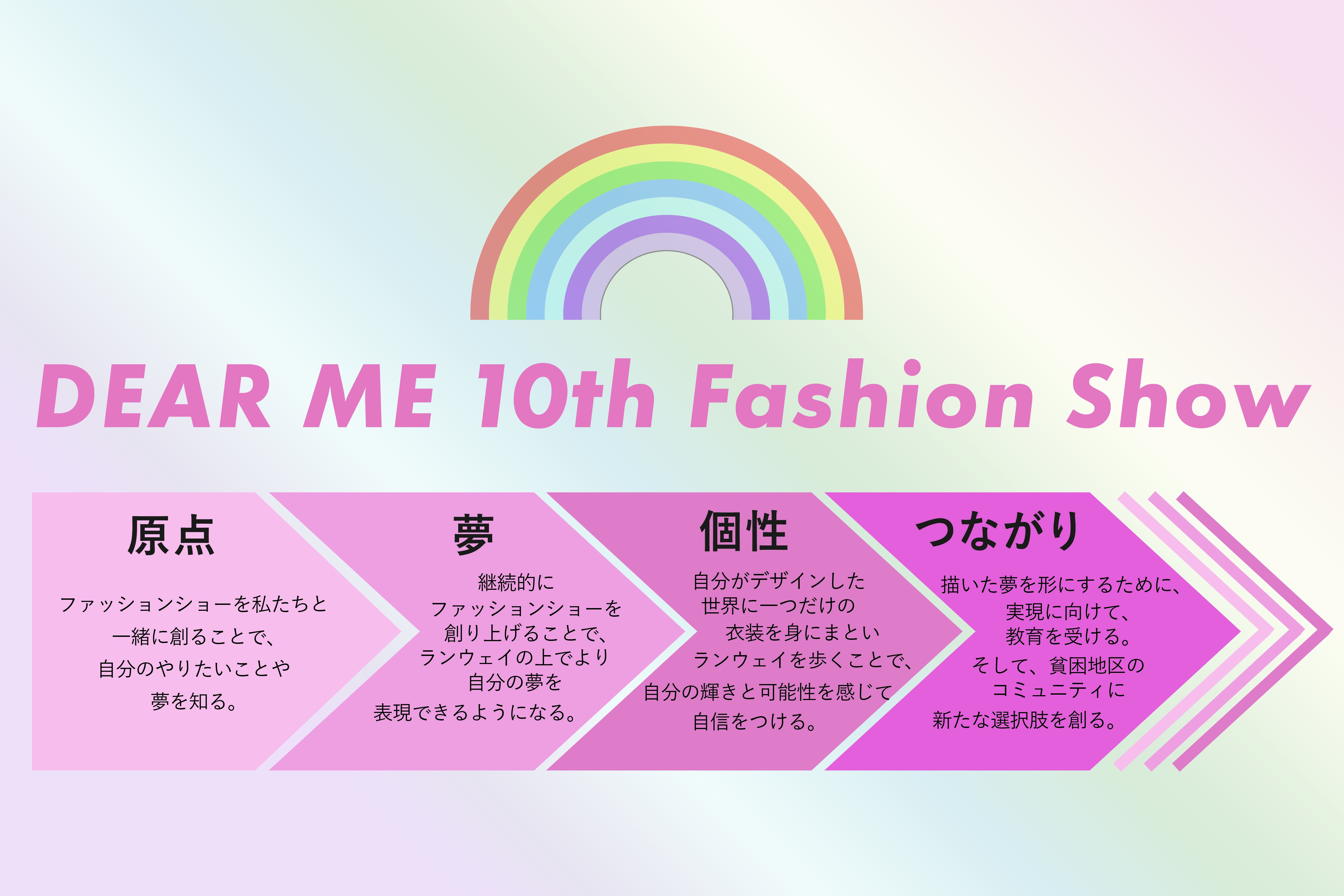 そして、記念すべき第10回目のファッションショーのテーマは「虹」。