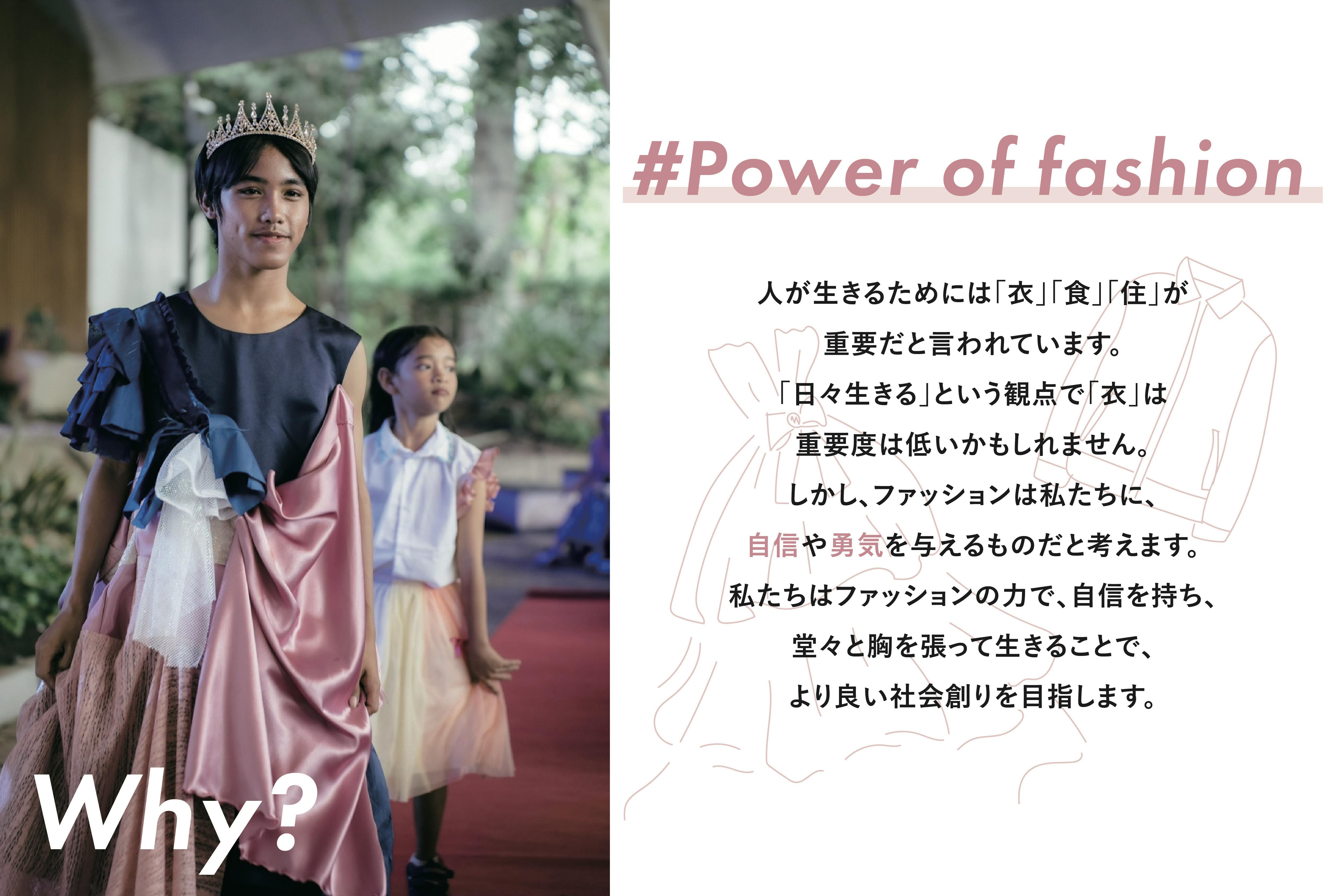 どんな環境で暮らす子どもも、夢を描きかたちにする権利がある。そして、子どもたちが希望をもって描いた大きな夢を夢で終わらせたくない。そんな想いで、私たちはファッションショーを開催しています。
