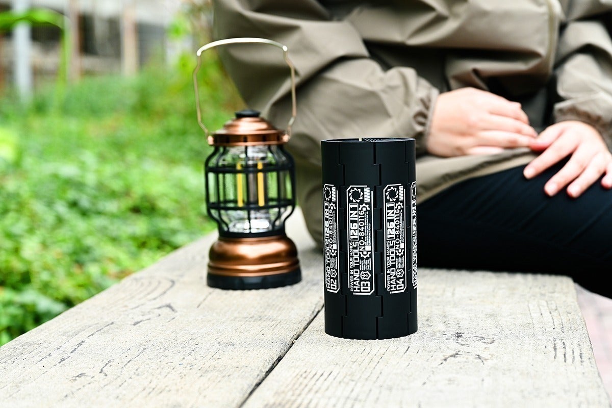 アウトドアシーンで自然に溶け込むような、洗練されたケースはまるで、キャンプギアのよう。ドライバーはあえて、手動モデルを採用し、緊急時や充電できない場面でもすぐに使えるようにしました。