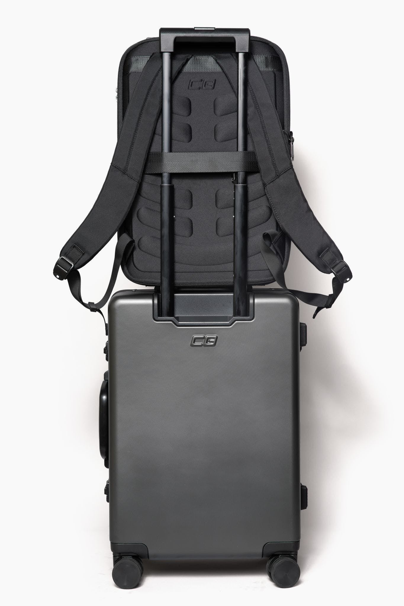 旅行や出張などではキャリーケースを持っていくことも多いでしょう。CYBER PACKの背中部分には、キャリーケースのハンドルに通せるストラップを装備。空港で長い距離を歩くときなど、ラクになりますよ。
