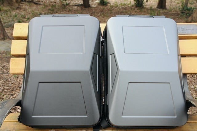 A. 硬質な素材で作られた外装のバックパックは、他にもあります。いわゆるハードシェルで知名度の高い某リュックは、その外装にABS樹脂を使っています。これも強化プラスチックであり似たように見えますが、比較してみると耐衝撃性・耐熱性・難燃性ではポリカーボネート樹脂の方がまさっていると言われています。やはり防弾ガラス、鎮圧用のシールド(楯)、ジェット戦闘機のキャノピーなど、命を守る過酷な製品に使用されているだけありますね。