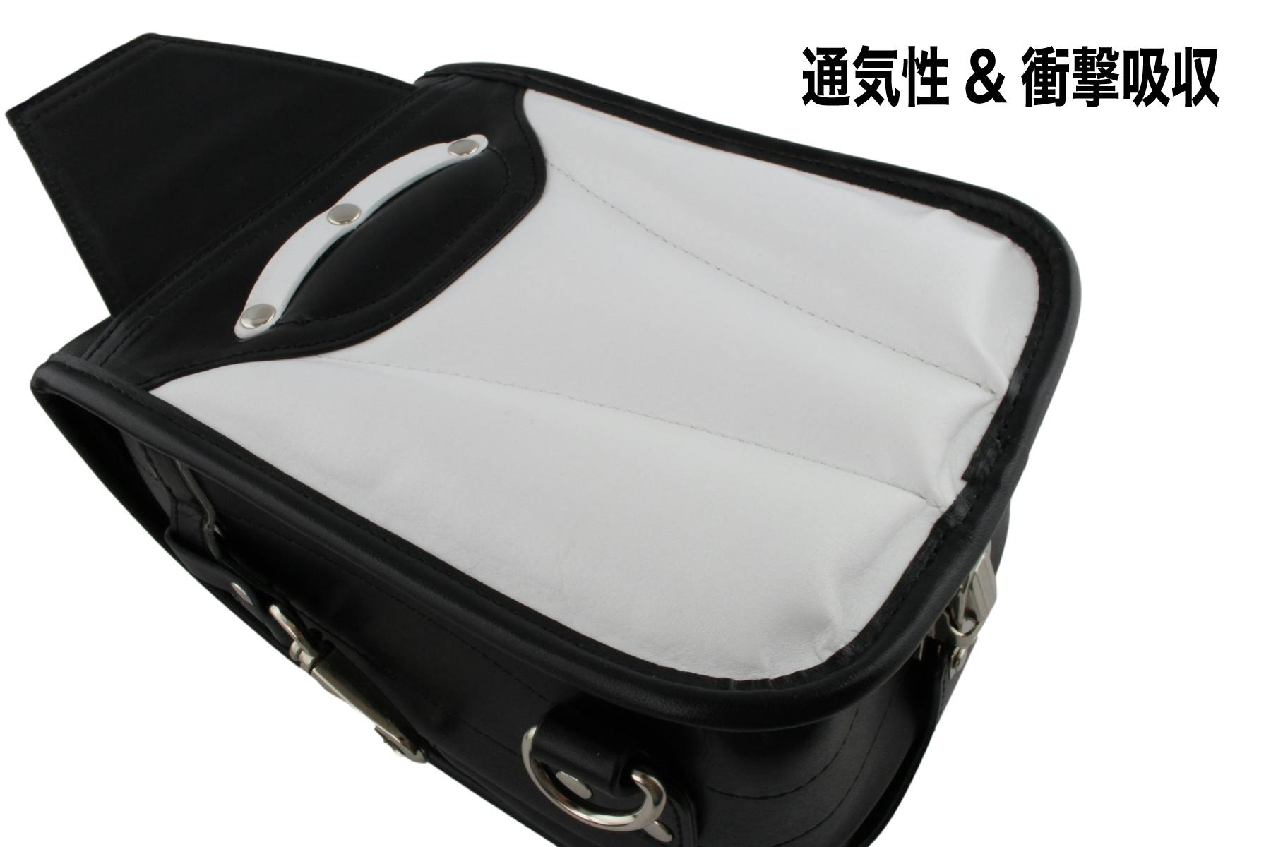 背面のクッションがランドセルの雰囲気を演出。通気性に優れ、衝撃を吸収します。
