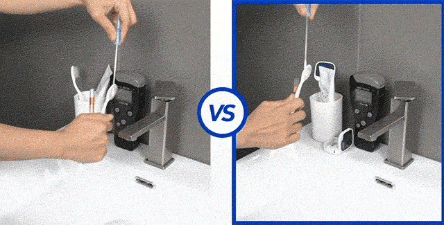 歯ブラシをそのまま放って置くと、細菌は無限に増殖します。All new Cubingに入れれるだけで、約3分間で細菌を除菌することができます!
