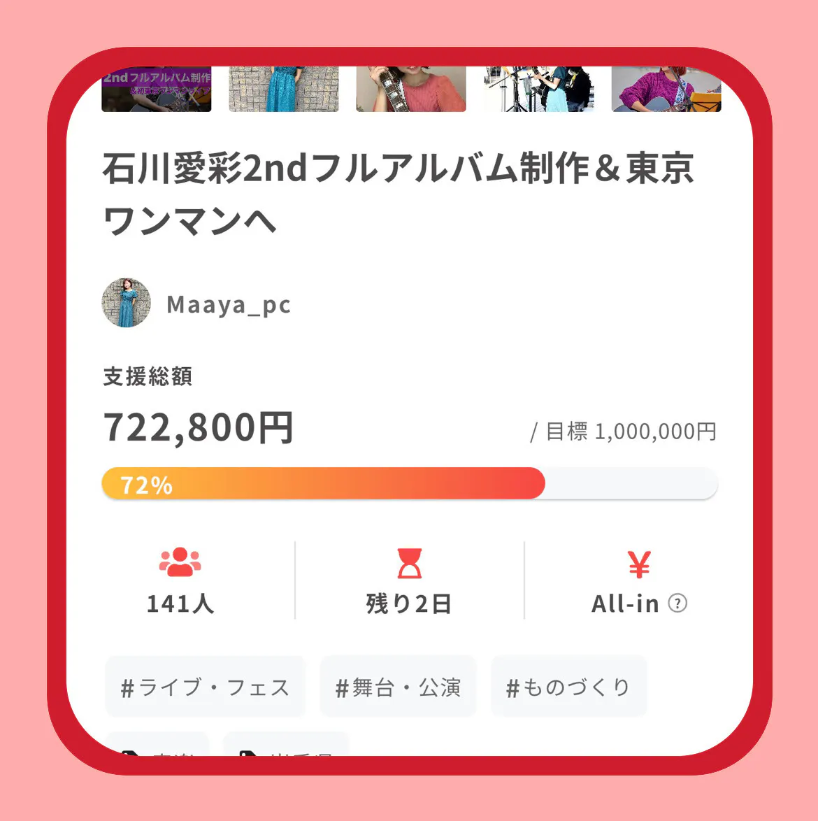 現在なんとか72%までご支援を頂いております。ここまでのご支援も、141名様が紡いでくださった本当に有難い応援です。心より感謝申し上げます。
