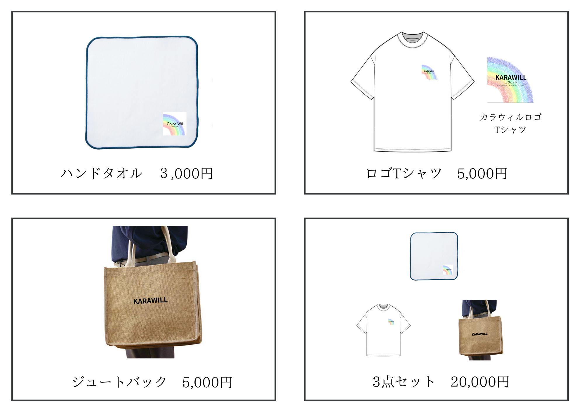 ・ハンドタオル、Tシャツ、ジュートバックの3点セット